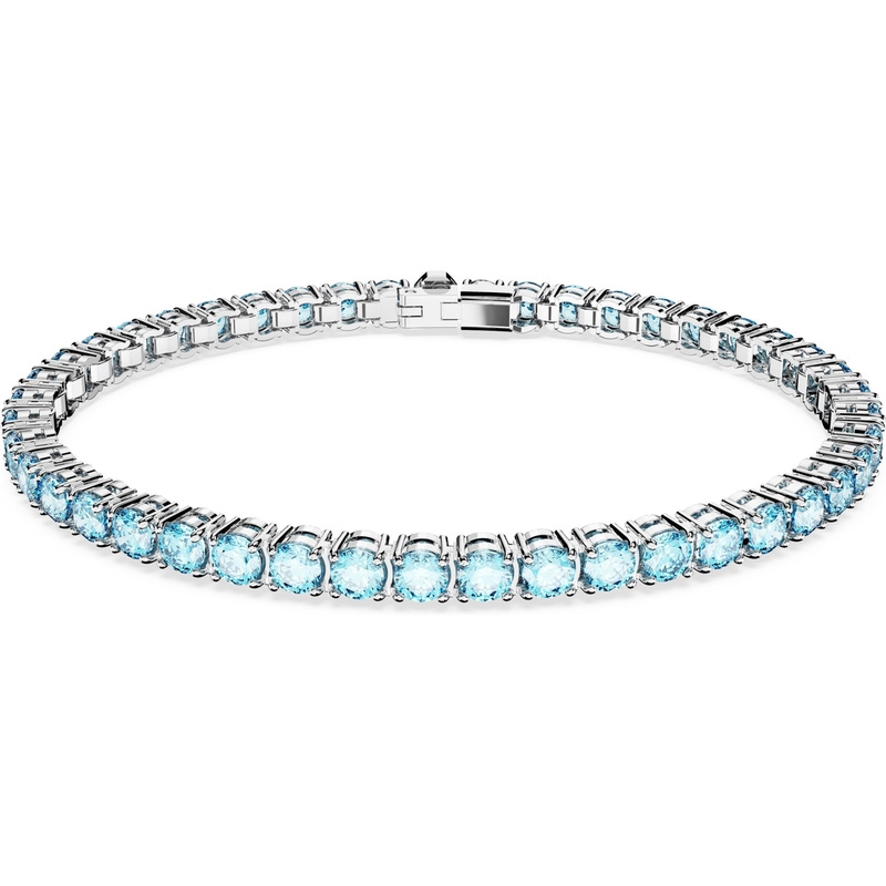 Met deze glinsterende Swarovski Matrix tennisarmband blauwe stenen omring je jouw pols met levendige juwelen uit de Matrix Tennis serie. In een vloeiende lijn sieren blauwe Swarovski kristallen een baan om jouw pols. De kristallen hebben een breedte van 4 millimeter en het polssieraad is in verschillende lengtes verkrijgbaar. Draag de tennisarmband enkel of in combinatie met andere sieraden uit de Matrix Tennis serie van jouw favoriete merk. Overweeg je vaker bij ons te bestellen? Log dan in met je eigen account. Zo spaar je meteen voor bonuspunten. Deze zijn inwisselbaar bij een volgende bestelling. Je korting kan daarmee flink oplopen!
